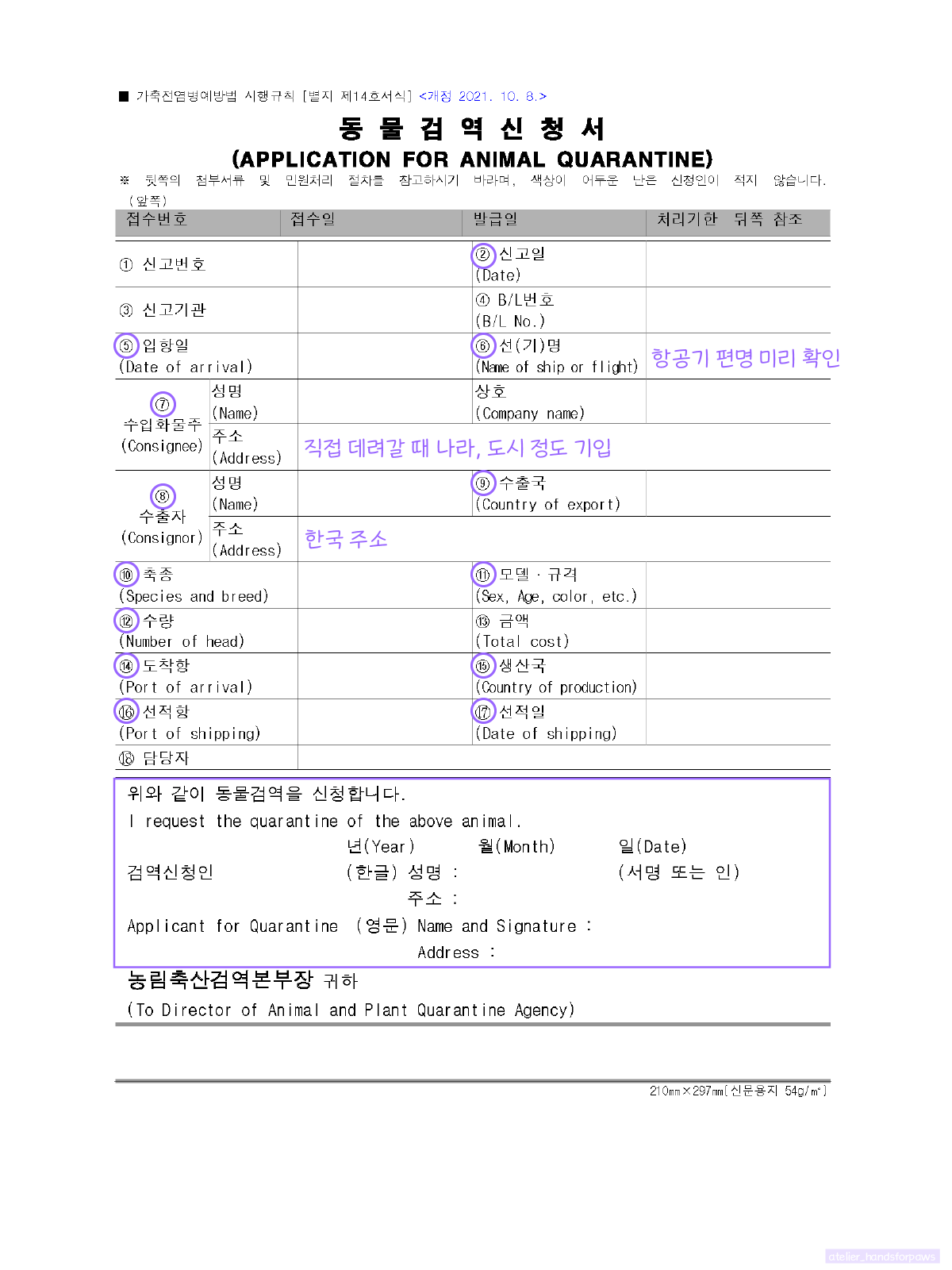 신청서를 제출하면 검역사무소에서