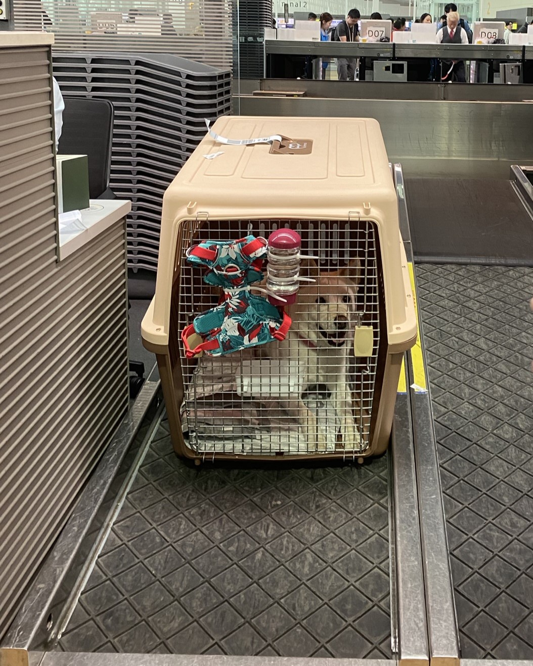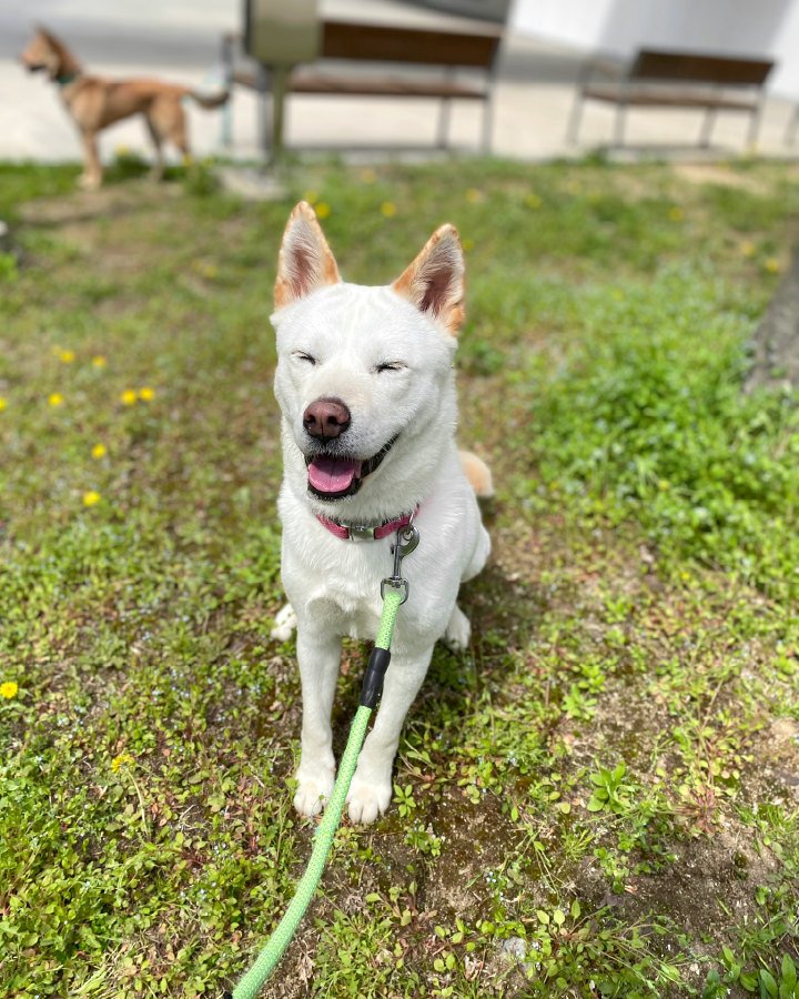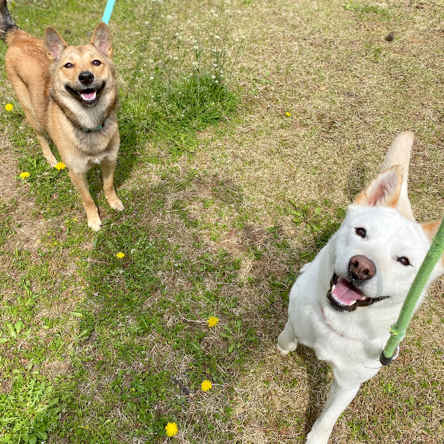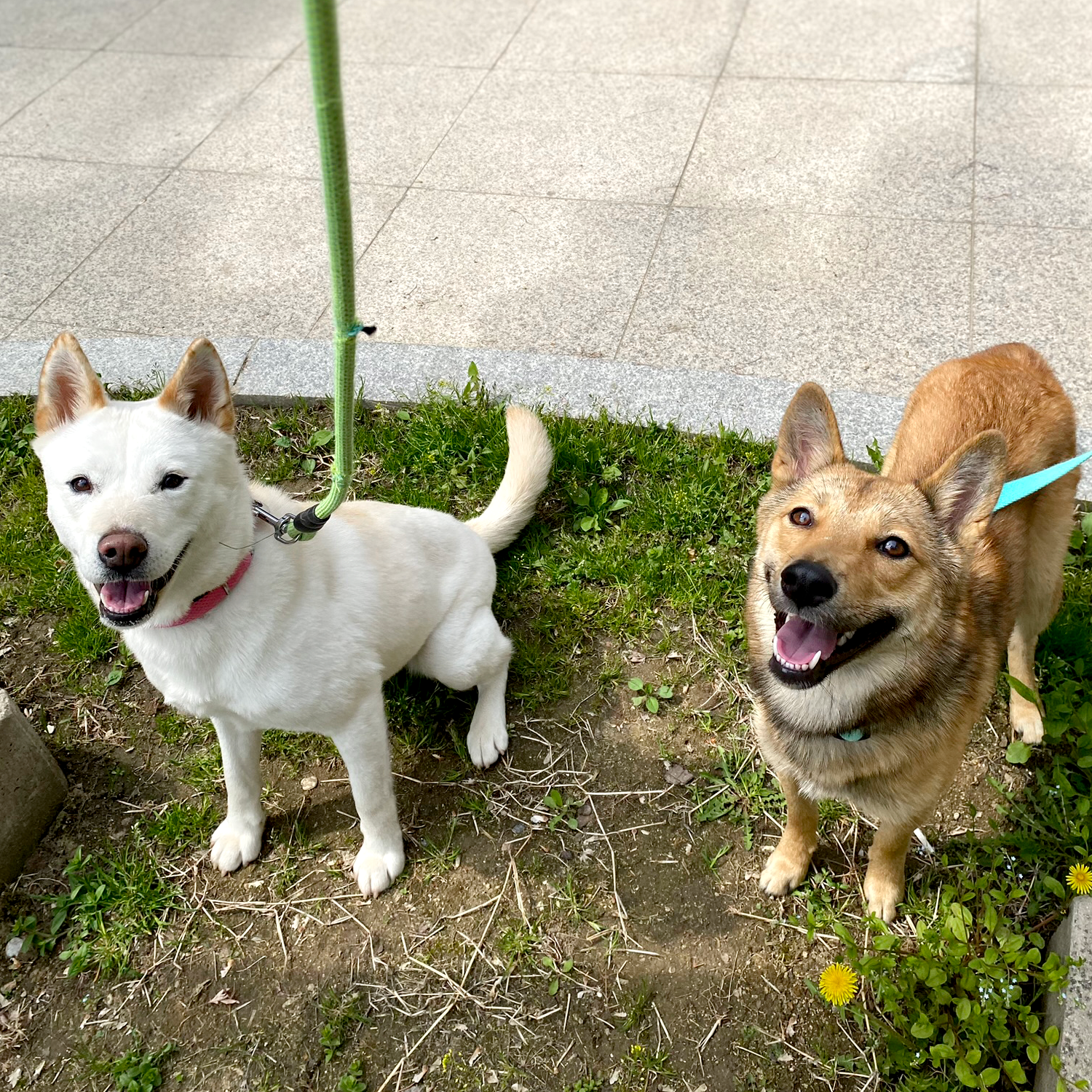 인천공항 제2터미널 잔디밭에서 산책 바바(왼쪽) 진(오른쪽)