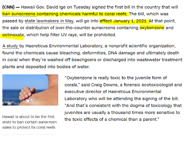 하와이에서는 해양생물 보호를 위해 특정성분이 들어간 선크림 사용을 금지합니다.
