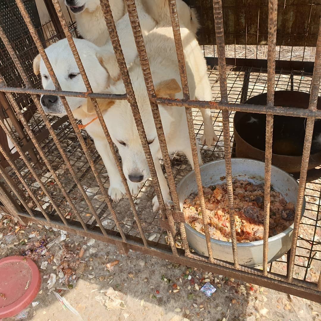 쇠꼬챙이에 목이 뚫려 뜬장에서 나가는 모습을