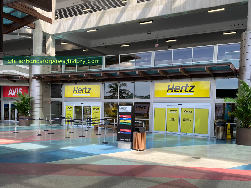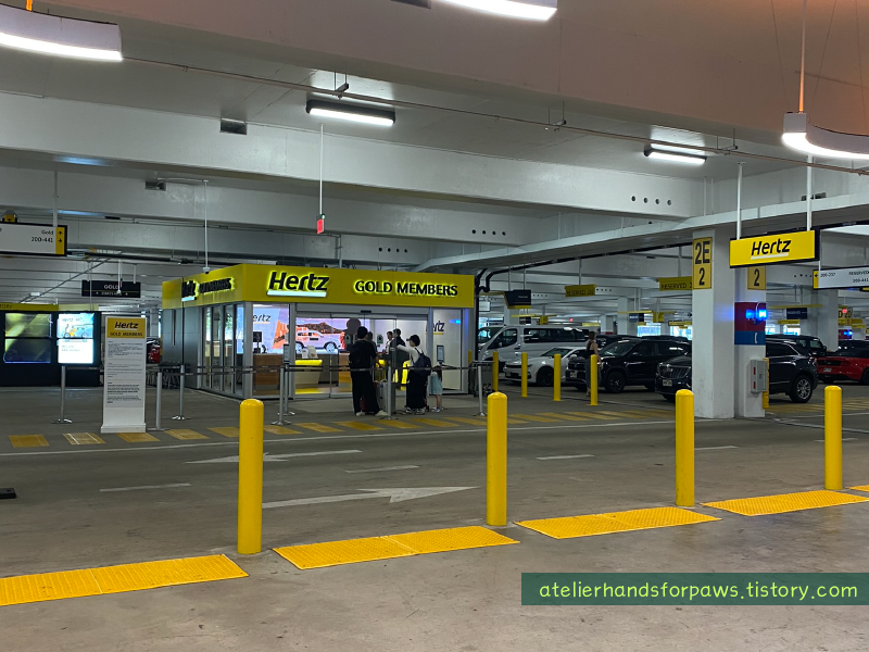 (허츠 말고도 렌트카 회사들 픽업 장소 다 여기 모여있음)