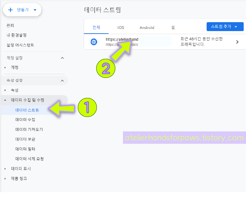 (2) [데이터 스트림]에서 연결해 놓은 페이지를 선택합니다.
