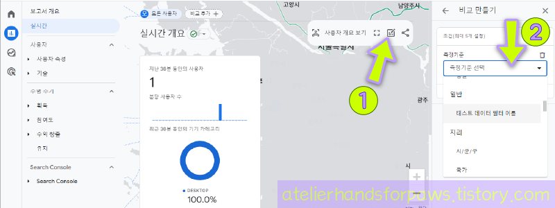 내부데이터 필터가 "테스트 데이터필터"로 설정되어있는 상태입니다.