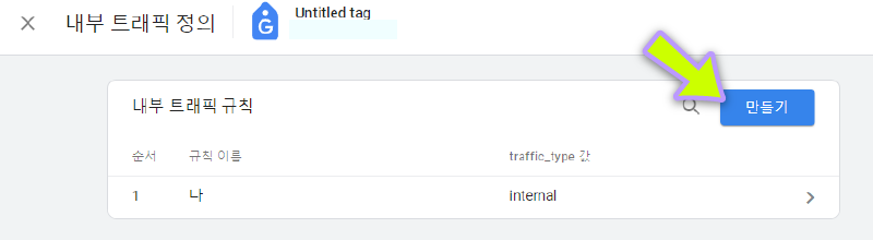 (5) [만들기]를 클릭하여 내부트래픽 정의를 시작합니다.